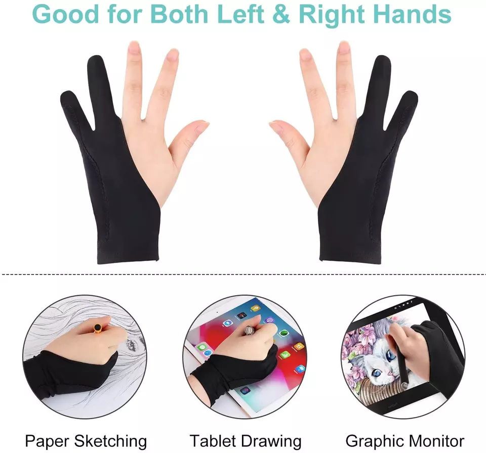 2 Finger Anti-touch Screen Artist Glove for Tablet drawing
