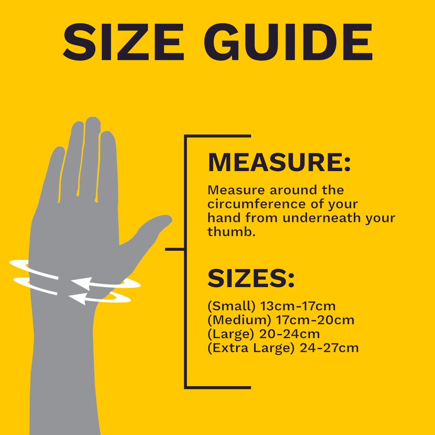 Proper fit is essential. Use the size guide to ensure a supportive fit that does not restrict blood flow. If you experience numbness, tingling, discoloration, or discomfort, remove the gloves immediately. Compression should never be painful.