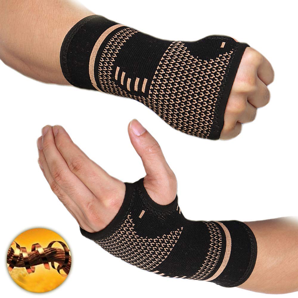 - 1x Pair of Copper Compression Wrist & Hand Support Sleeves for Wrist Tendonitis & Arthritis