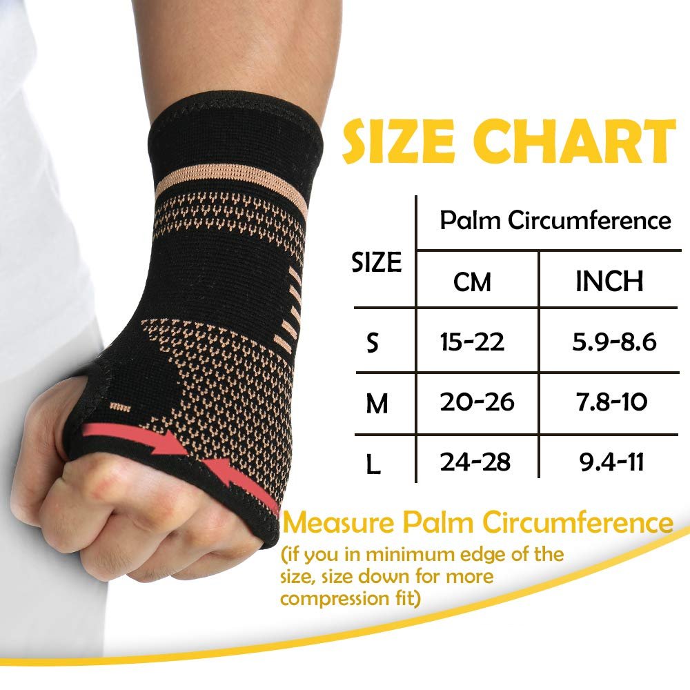 Copper Compression Wrist & Hand Support Sleeves for Wrist Tendonitis & Arthritis