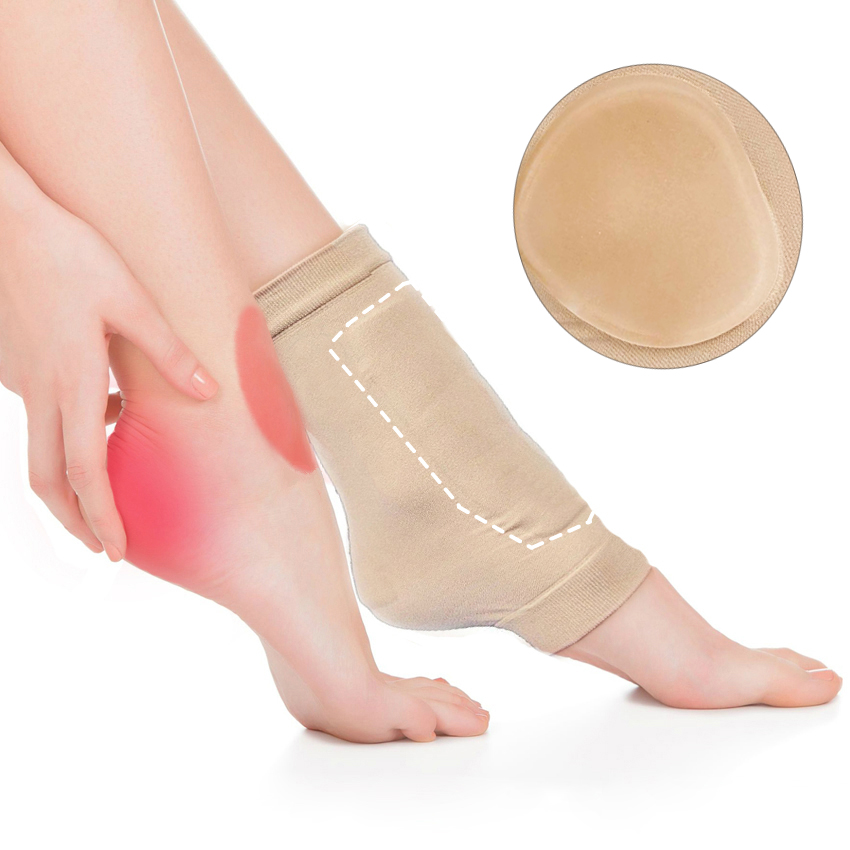 - Features 2 silicone gel pads on both the front and back on the socks to help protect your heels from excessive pressure, shock and impacts