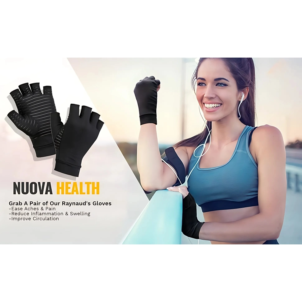 Arthritis in the hands and fingers is a common yet serious condition that requires prompt and effective treatment. From medications and physical therapy to lifestyle changes and, in severe cases, surgery, multiple treatment options are available. However, compression gloves stand out as a non-invasive, effective solution that can provide immediate relief and long-term benefits. Our compression gloves at NuovaHealth are not just for Raynaud’s disease—they’re a practical and scientifically-backed option for anyone suffering from arthritis in their hands. Don’t let arthritis dictate your life. Invest in your health and comfort today.