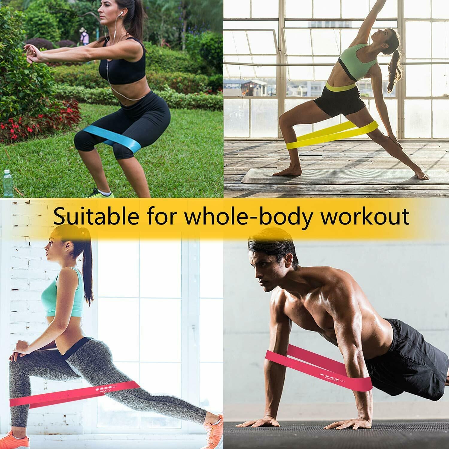 - 5x loop bands with 5 different levels of resistance that provide great way to give your whole body a full workout