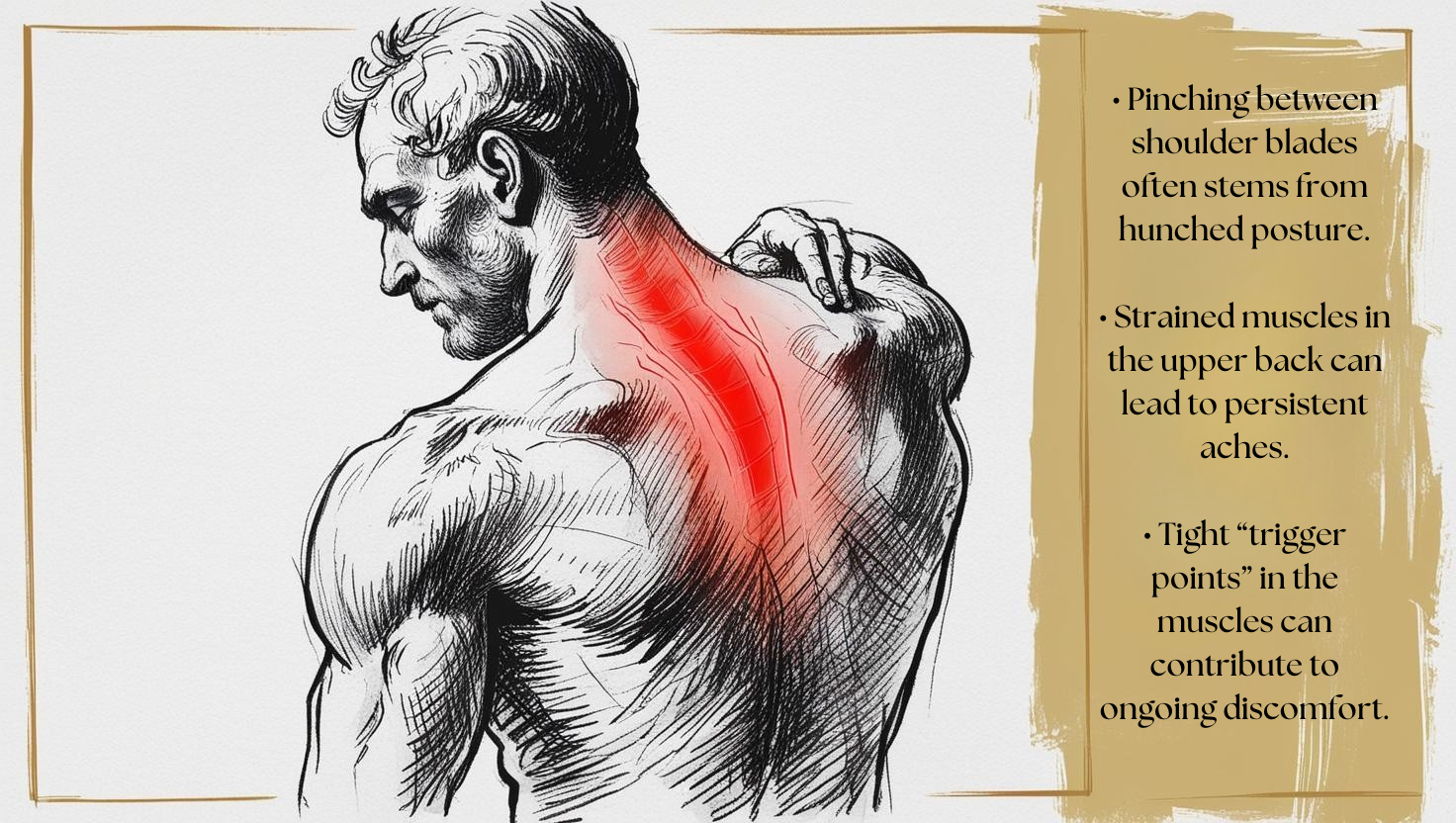 Upper Back Pain: Why do I feel a pinching sensation between my shoulder blades when working at my desk?
